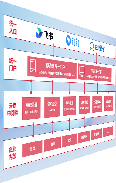 对协作平台提供支持服务,,,,支持企业应用与协作平台对接,,,包含组织同步、、消息集成、、、待办集成等。。支持目前主流的协作平台:钉钉、、、企微和飞书。。