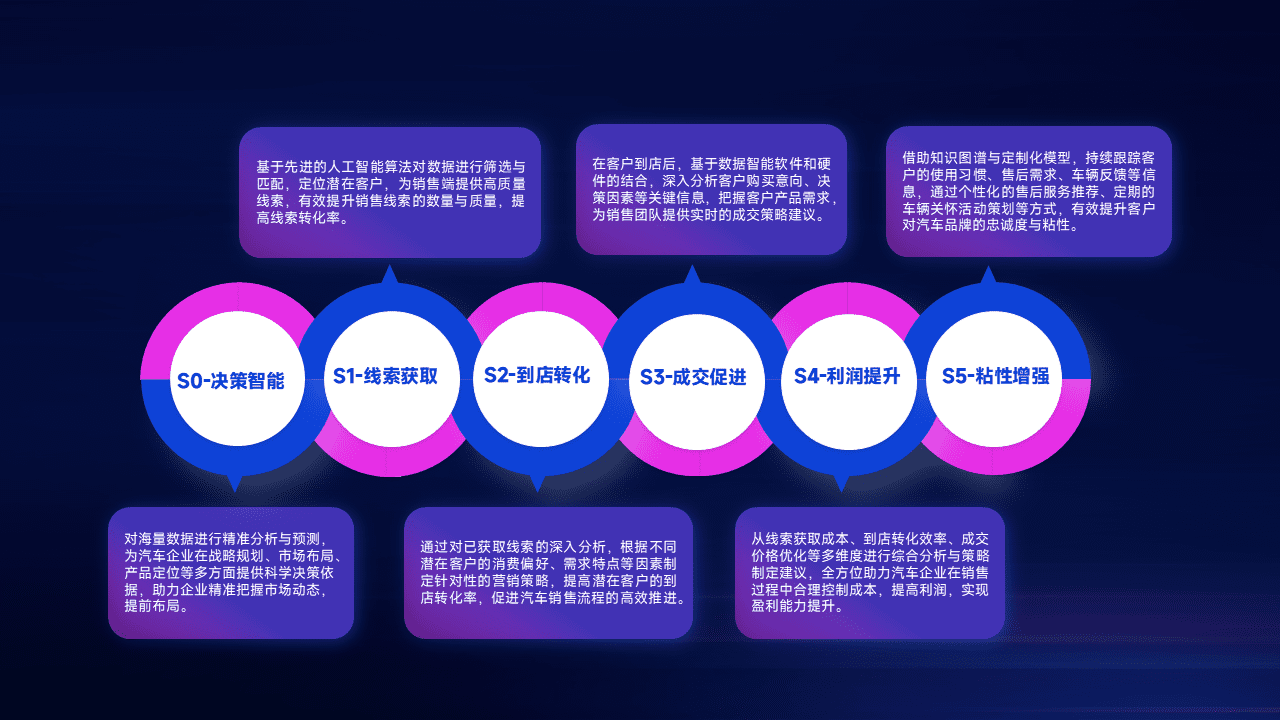 通过拓宽潜在客户来源、、优化线索分配并提高到店转化率,,,,以增强销售效率。。。同时,,,利用线索数据不断优化分析模型,,,,有效提升转化率,,扩大营销影响力。。。。